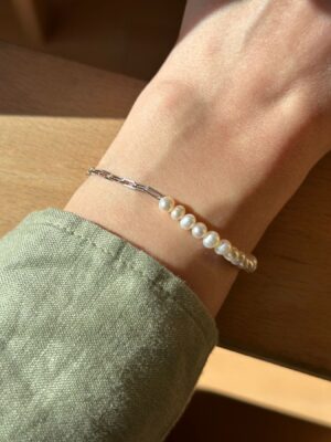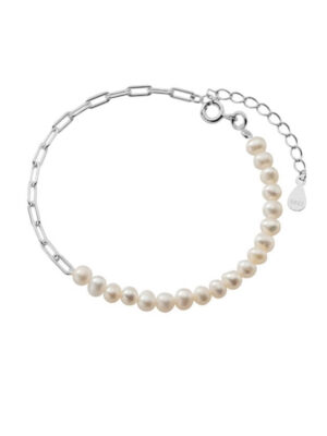 Bratara Seawater din perle naturale albe de 5 x 7 mm si accesorii din argint 925, lungime ajustabila