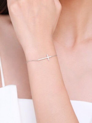 Bratara din argint 925 Faithfulness cu pandantiv in forma de cruce, lungime ajustabila