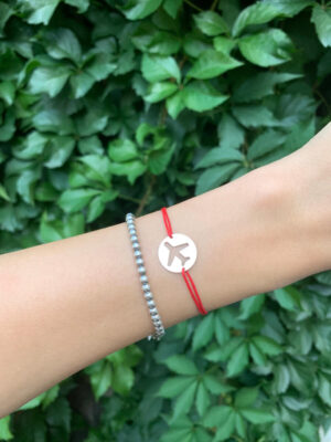 Bratara cu snur rosu si pandantiv din argint 925 in forma de avion