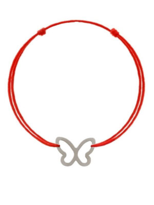 Bratara cu snur rosu si pandantiv din argint 925 in forma de fluture