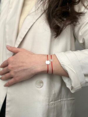 Bratara cu snur rosu si pandantiv din argint 925 in forma de banut