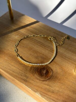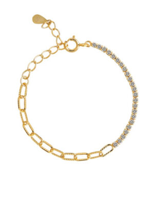 Bratara din argint 925 Crystal Chain aurie cu pietre de zirconiu si lant