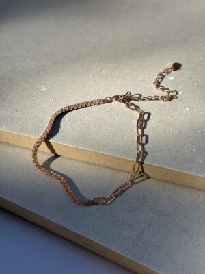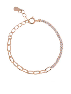 Bratara din argint 925 Crystal Chain auriu rose cu pietre de zirconiu si lant
