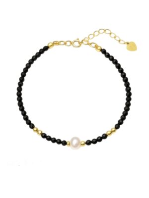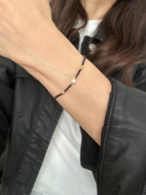 Bratara Single Pearl din Spinel negru de 2,5 mm cu perla naturala de cultura alba de 5 mm, masura ajustabila