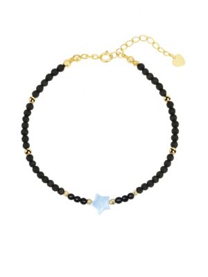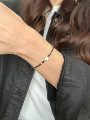 Bratara Star Pearl din Spinel negru de 2, 5 mm cu stea din sidef natural de 5 mm si accesorii din argint 925, masura ajustabila