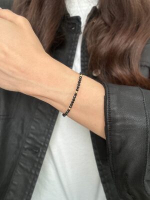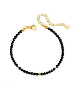 Bratara din Spinel negru de 3 mm si accesorii din argint 925 placate cu aur, masura ajustabila