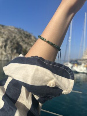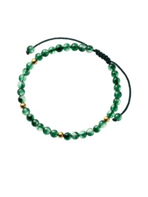 Bratara Agathe din pietre semipretioase de Agat verde de 5 mm si bilute din argint, lungime ajustabila