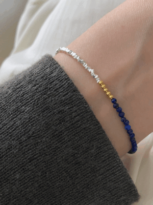 Bratara Summer Breeze din pietre de Lapis Lazuli de 2 mm si accesorii din argint 925, lungime ajustabila