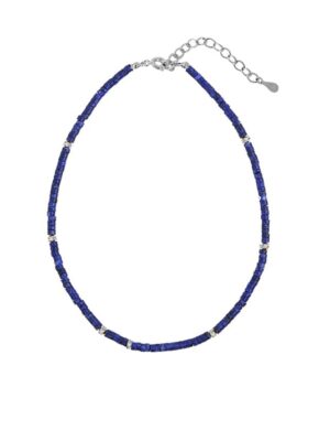 Bratara Blue Shade din pietre de Lapis Lazuli de 2 mm si accesorii din argint 925, lungime ajustabila