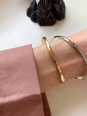 Bratara aurie fixa din Argint 925 cu model wave, latime 0,3 cm, lungime 16,5 cm