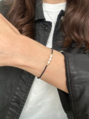 Bratara Single Pearl din Spinel negru de 2,5 mm cu perla naturala de cultura alba de 5 mm, masura ajustabila