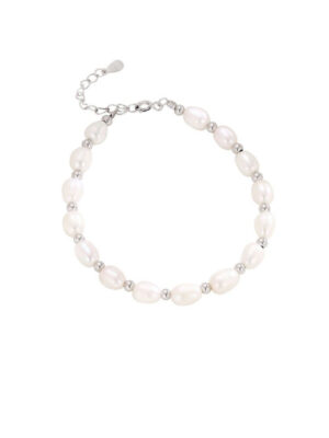 Bratara Seawater din perle naturale albe de 5 x 7 mm si accesorii din argint 925, lungime ajustabila