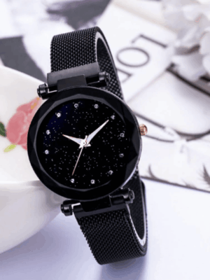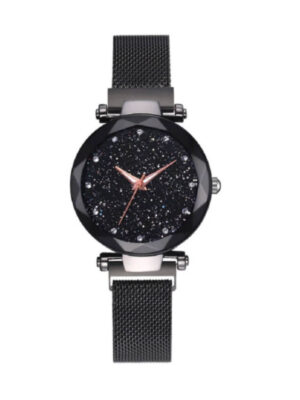 Ceas Shinny cu bratara magnetica neagra si cadran cu sclipici negru