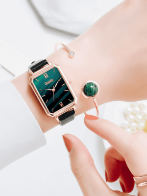 Ceas Galaxy cu bratara din piele ecologica si cadran verde