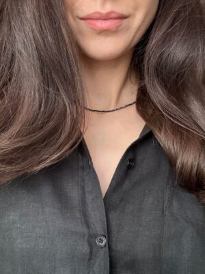 Colier la baza gatului din Spinel negru sfere fatetate de 2 mm si accesorii din Argint 925