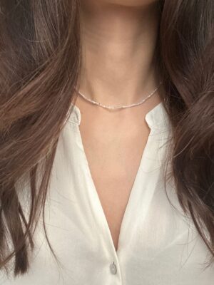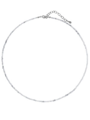 Colier la baza gatului din Piatra Lunii alba sfere fatetate de 2 mm si accesorii din Argint 925