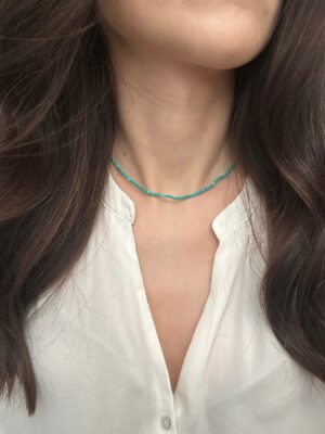 Colier la baza gatului din piatra semipretioasa de Turcoaz de 2 mm si accesorii din Argint 925