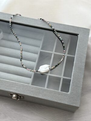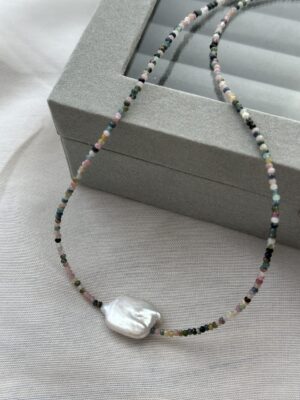 Colier la baza gatului din Turmalina multicolora fatetata de 2 mm cu perla naturala si accesorii din Argint 925