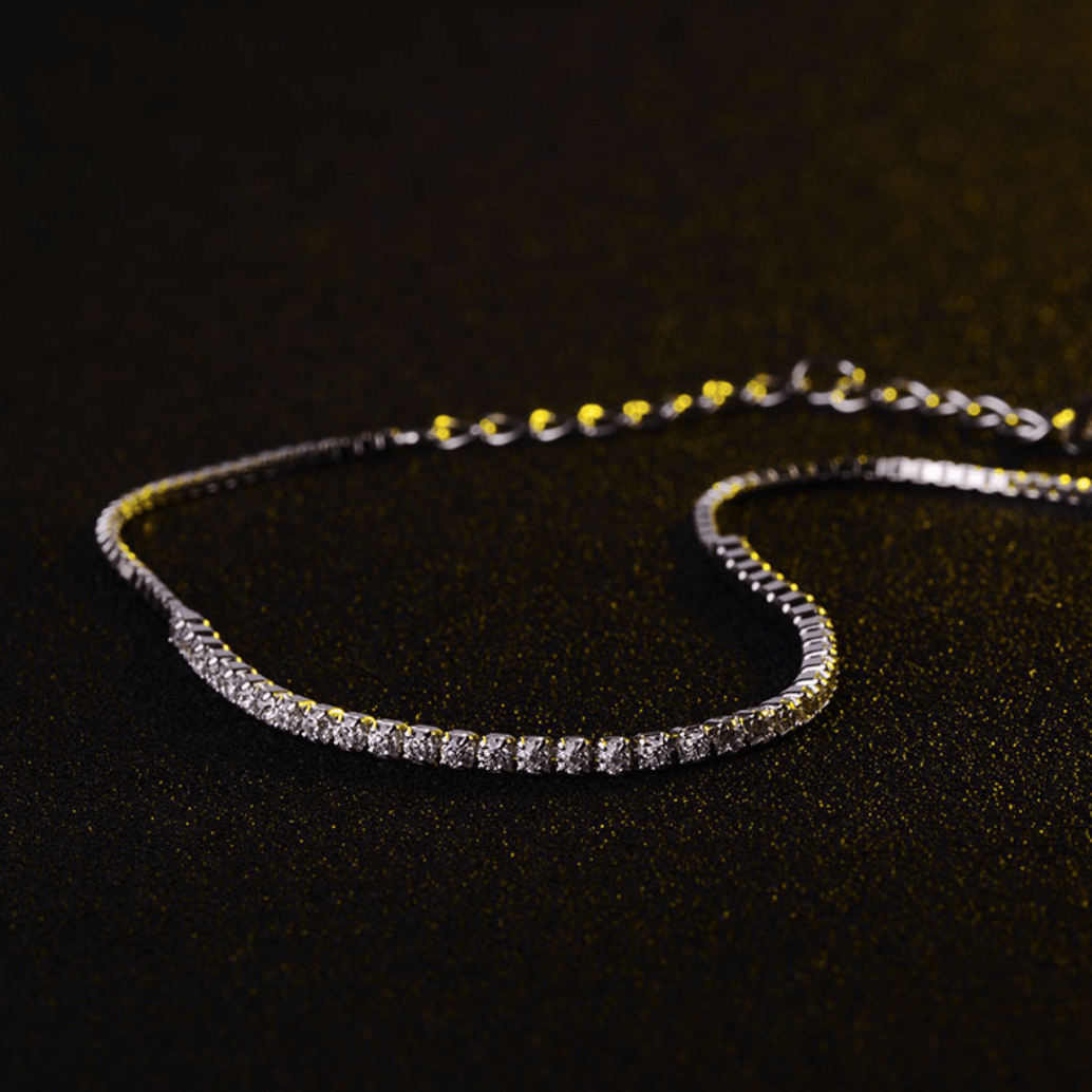 Bratara din argint placata cu rodiu pentru stralucire cu pietre de zirconiu. Foarte usor de potrivit indiferent de circumferinta ingheieturii datorita faptului ca are lungime ajustabila.