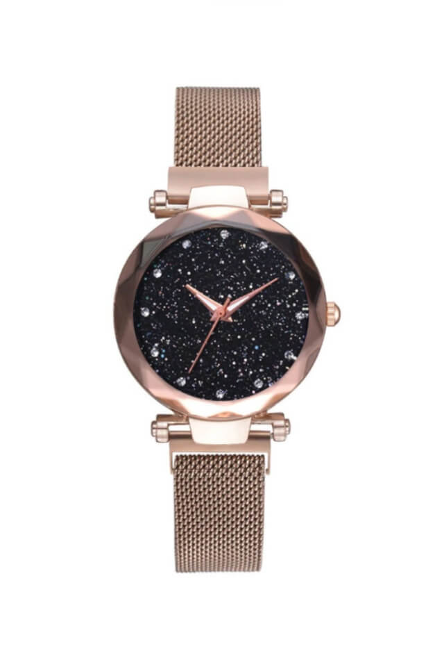 Ceasul are curea reglabila din aliaj metalic, carcasa de culoare aurie si este ideal daca iti doresti un ceas simplu si elegant.
