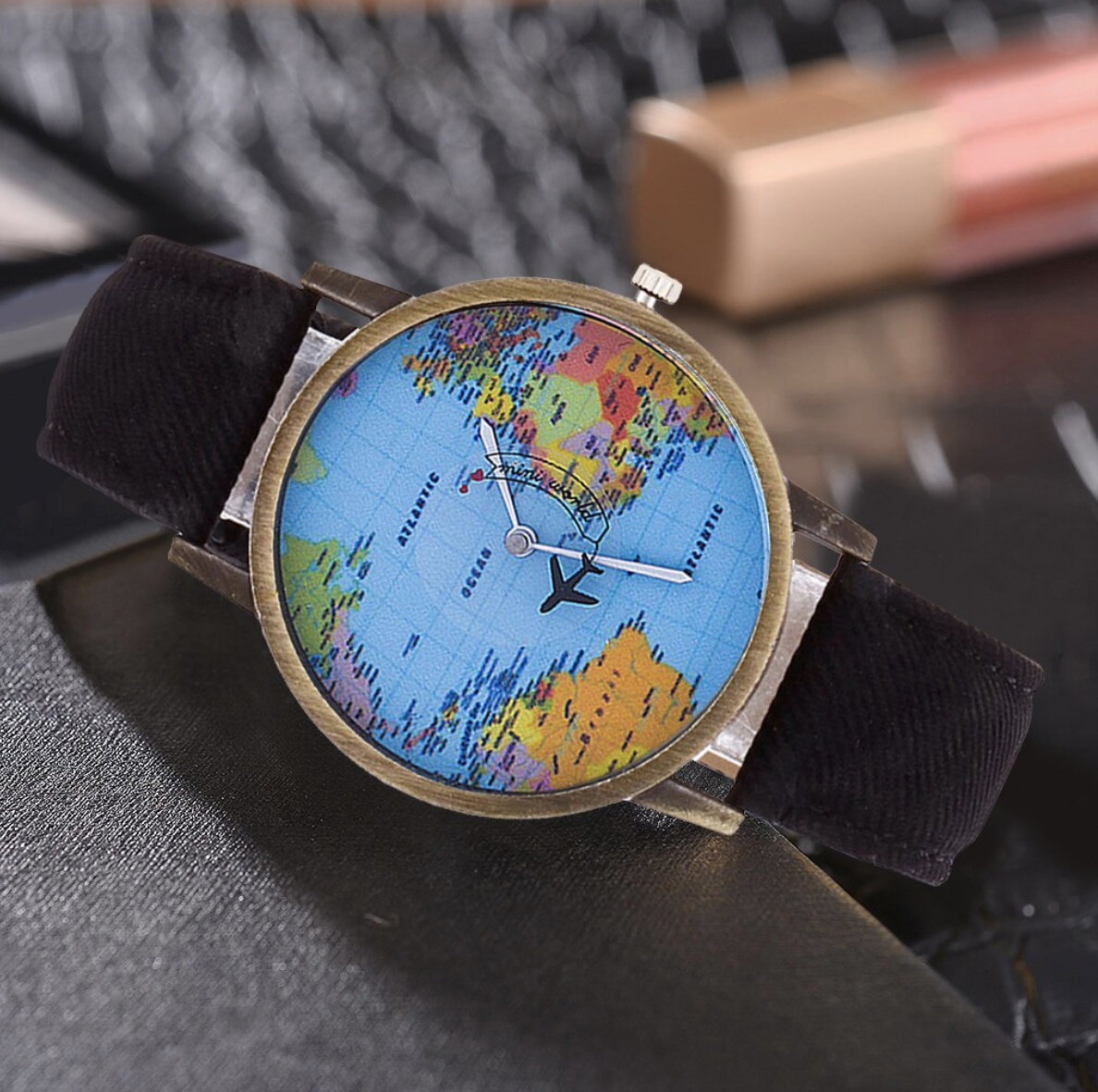 Avionul din cadran este mobil. Ceasul poate fi un cadou ideal pentru un impatimit al calatoriilor.